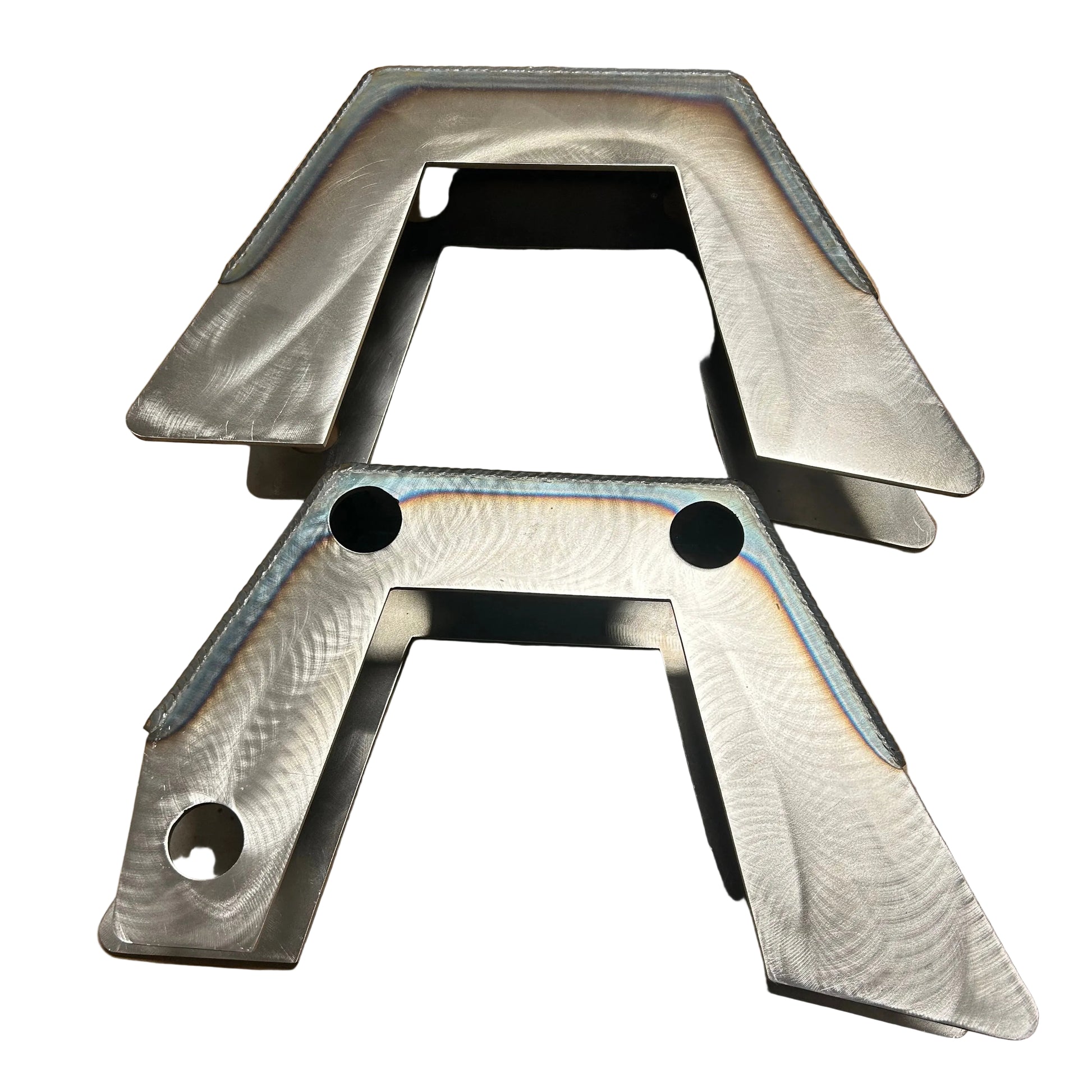 THIS CNC CUT STEEL STEP NOTCH KIT IS PERFECT FOR CHEVY/GMC TRUCK OWNERS. MADE FROM 1/4" THICK STEEL, THIS HEAVY-DUTY KIT PROVIDES INCREASED FRAME CLEARANCE. PERFECT FOR 10" OR LOWER DROPPED TRUCKS OR TRUCKS THAT HAVE AIR BAGS. THIS NOTCH KIT COMES PRE-WELDED READY FOR INSTALL. OUR STEP NOTCHES ASLO COME WITH 2 PRE-DRILLED 1.5" HOLES FOR OUR DOUBLE BAR SHOCK RELOCATION KITS FOR QUICKER AND EASIER INSTALLATION. THE EXTRA HOLE AT THE BOTTOM IS FOR PLUG WELDING THE NOTCH TO THE FRAME SINCE THE GAS TANK IS TOO CLOSE FOR WELDING THE EDGE OF THE NOTCH. (SHOCK RELOCATION KIT SOLD SEPERATLY).
